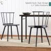 - SPINDLE-BACK CHAIRS: Two ergonomic chairs feature a curved backrest for support, with a unique spindle-back design, crafted with durable metal legs and engineered wood for stability
