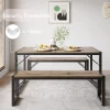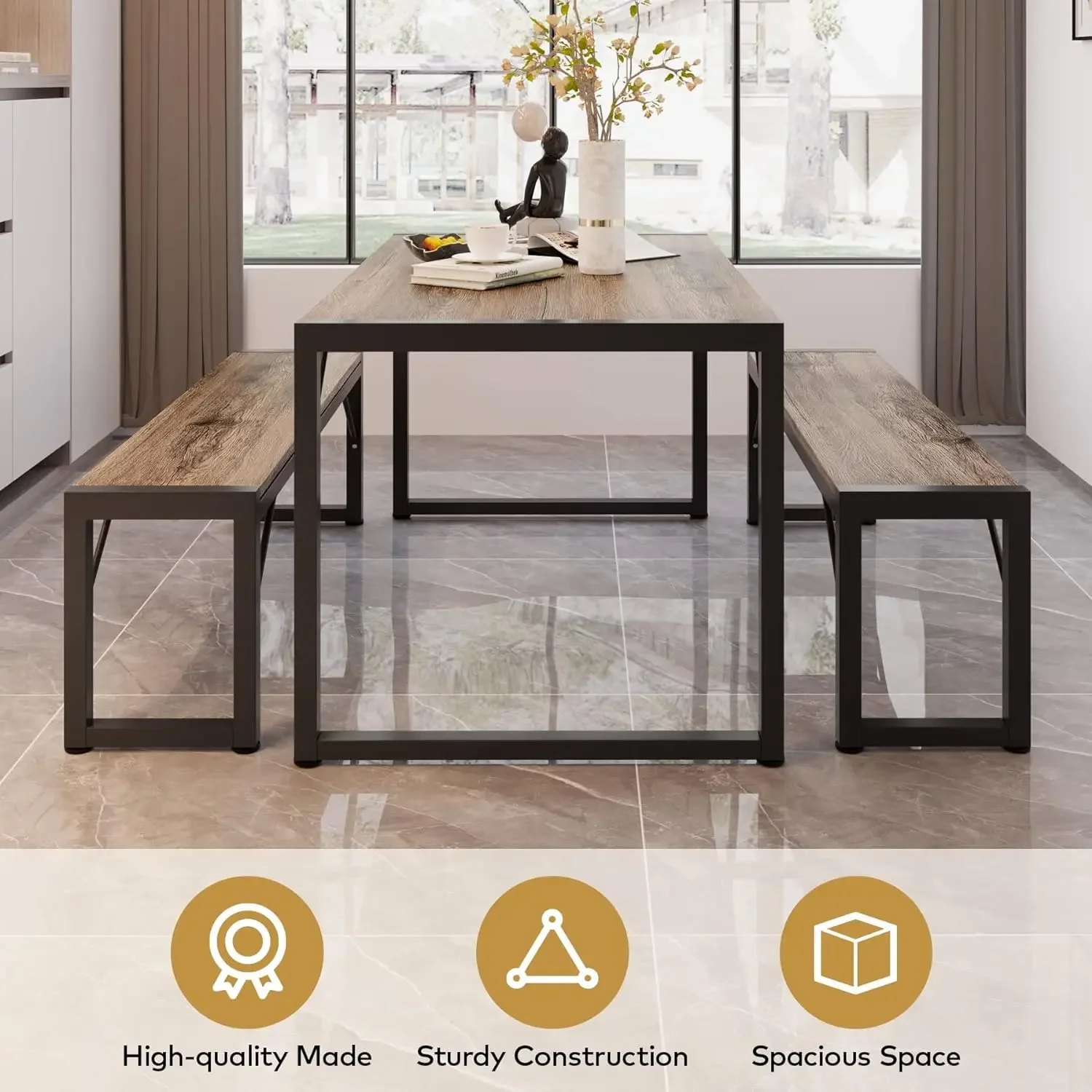 45.5″ Dining Table Set for 4, Kitchen Table Set with 2 Benches, Dining Room Table Set with Metal Frame & MDF Board, Space-Saving Dinette for Kitchen, Dining Room -Grey