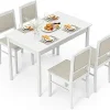 - Dining Table Chairs Set for 4: The 5-piece kitchen dining set includes a rectangular dining table and 4 wooden dining chairs, allowing you to enjoy delightful dining or drinking time with family or friends. The table measures 45” x 28” x 30” (L x W x H), and the chair measures 16” x 18” x 34” (L x W x H).