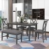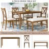 - [Comfortable Dinning Table and Chair Set] The X style chair back promotes great air circulation while both chair and bench seat are padded with thick cushions which allows you to sit cozily every time. Keep your dining set fresh and clean by simply wiping down with a wet cotton cloth. Ideal for dinette, kitchen, and dining areas, this multi-functional dining set seats up to 6 people, perfect for families to enjoy meal times together.