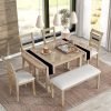 - [Durable Dining Table Set] Our dining table chair set made of high-quality solid rubber wood and MDF boards, this 6-Piece rustic-styled dining table and chair set is designed to last for years. And the rubber wood seat is wear-resistant, built for a long-time use. Table weight capacity: 200lbs; Chair weight capacity: 250lbs; Bench weight capacity: 250lbs.