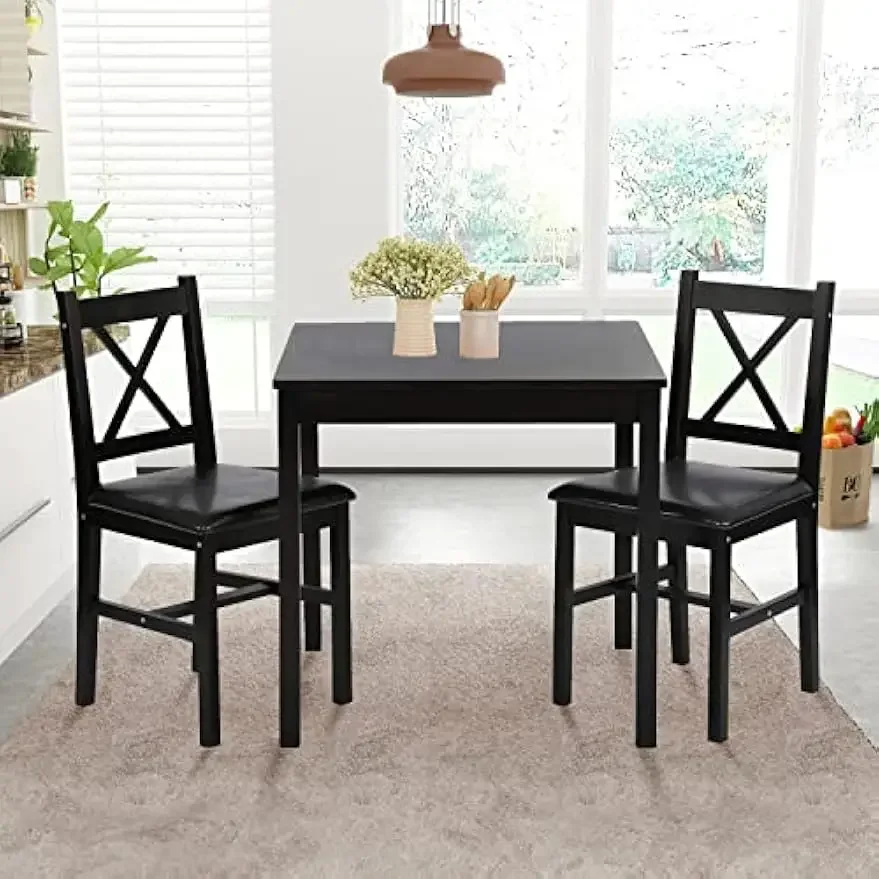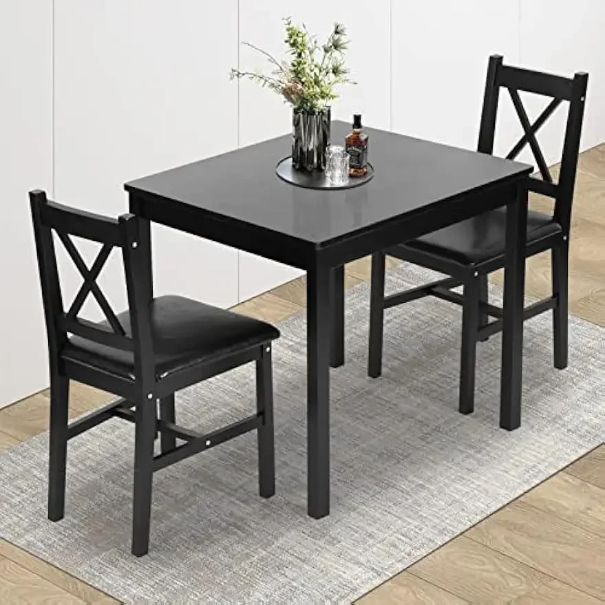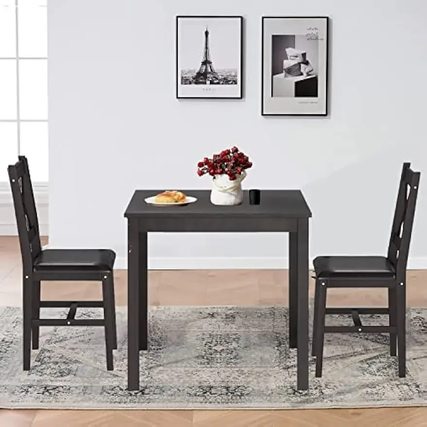 Kitchen 3 Piece Dining Table Set Sturdy Wooden Square Table and Chair Breakfast Table Set for 2 Person, Small Dining, Brown
